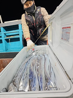 ■■간밤 갈치 쿨러조황!■■실력의 약체를 안고 몇분 안되는 소수 인원으로 출항했습니다.실력자는 3분, 조황안따지시고 바다바람쐬시는 단골조사님 두어분, 그리고 한참 배워야한다는 조사님 두어분, 마지막으로 생전 처음 체험하시는 부부조사님 두분...허허~, 맴버 구성이 짱짱합니다.초반전엔 꾸준한 입질속에 순조로운 출발을 했습니다.낮부터 4지 5지급 대치들이 퍽퍽..!저녁8시에 쿨러조황이 나오는 기염을 토하였네요.여기에 새벽 피딩까지 겹쳤다면 금상첨화로 한 조사님은 두쿨러에 도전할수 있었을텐데 아쉬움을 남겼네요금요일부터 다시 출동합니다[[예약현황]]※화요일 : 쉽니다.※수요일 : 계속 쉽니다.※목요일 : 기상관망※금요일 : 자리여유※토요일 : 자리여유※일요일 : 자리여유이후 쭈욱 예약가능~~12월31일 해돋이낚시 예약가능예약..010-9018-2589 또는 https://sunjin.sunsang24.com/ship/schedule_fleet/#통영대교피싱 #통영대교 #대교피싱 #대교 #어판장 #왕갈치 #대갈치 #은갈치 #용가리 #대마권갈치 #먼바다갈치 #심해갈치 #통영갈치 #갈치조황 #생미끼 #갈치 #외줄낚시 #실시간=== 통영대교피싱 예약안내 ===예약문의 : 010-9018-2589채비문의 : 010-3858-2589오시는길 : 경남 통영시 용남면 용남해안로115(통영 IC 3분내거리, 다이소삼거리 좌회전하셔서 바로 비보호신호받고 좌회전으로 내려오시면 됩니다) 홈페이지 : http://sunjin.sunsang24.com/https://youtu.be/fDOXMnnA2H8?feature=shared