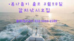 ■간밤 갈치, 대포 오징어 병행조황■일주일 만에 마실 나갔다가 드가는 길입니다.지난주 마지막 출조에 갈치 쿨러조황이 나오는 바람에 반신반의와 한편으론 살짝 기대를 하면서 출조 했지만, 오늘부로 갈치소식이 들릴때까지 갈치는 접고, 열기 찍고 오징어 전용으로 전환합니다.오징어 전용으로 출조했더라면 전원이 두자릿수는 문안했을것으로 보입니다.손님고기로 한치도 얼굴을 보이네요.부산선적 오징어 채낚기 조업선들이 포진해서 연일 조업하는것으로 봐서 현재 대마권 전역에 오징어가 포진해 있는것 같습니다.인자부터 왕대포 오징어 잡으러 가입시더![[출항일정]]이번주는 토요일, 일요일 기상이 좋아 출항합니다.●토요일==>>오징어 전